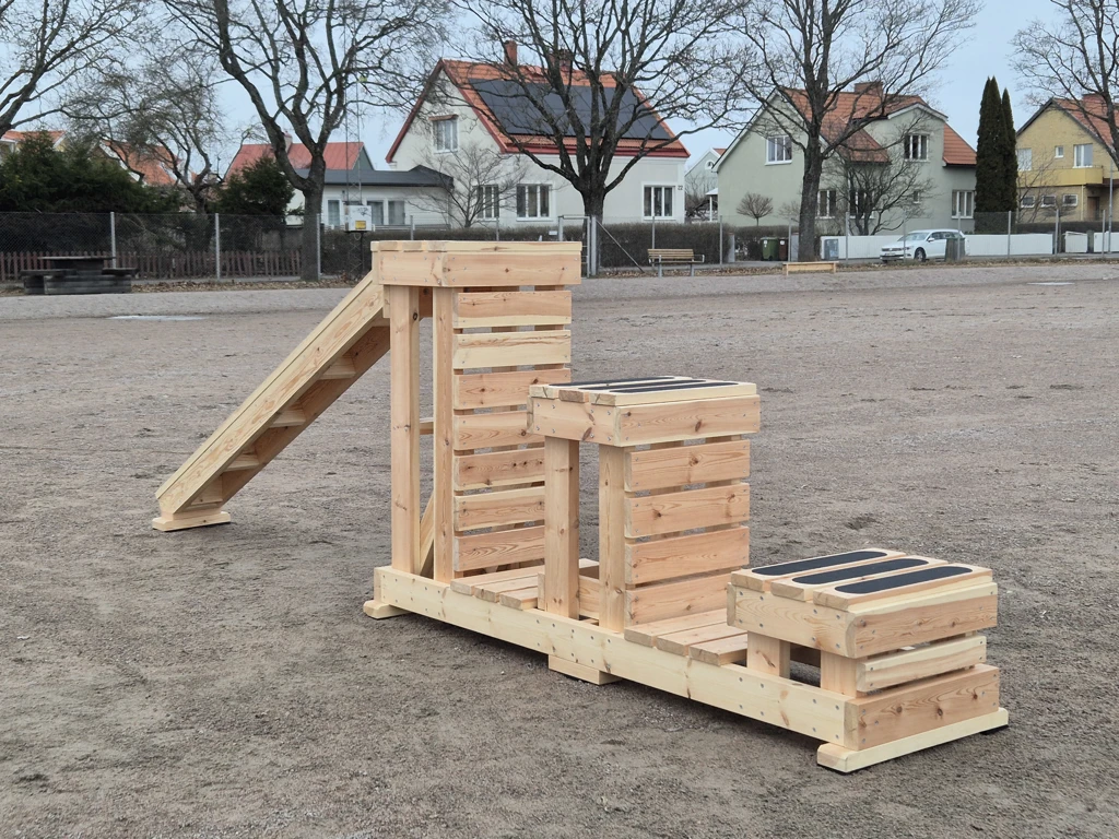 Den utmanande och roliga svensktillverkade hinderbanan består av 9 olika fristående moduler att kombinera efter önskemål, tillverkade i kärnfuru. Hindren levereras färdigmonterade, vilket medför en kostnadseffektiv installation. Hindren kan beställas obehandlade eller behandlade med pigmenterad träolja.
